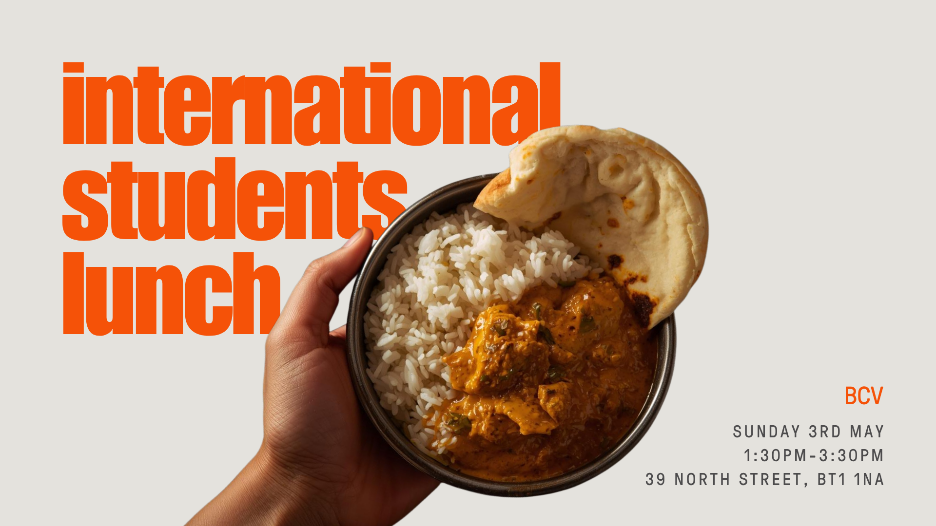 3rd May 2026, 1:30 pm – 3:30 pmWe are thankful that you have chosen to come and study in Belfast! We would love to meet you and introduce you to friends over lunch and hopefully have a lot of fun too!
