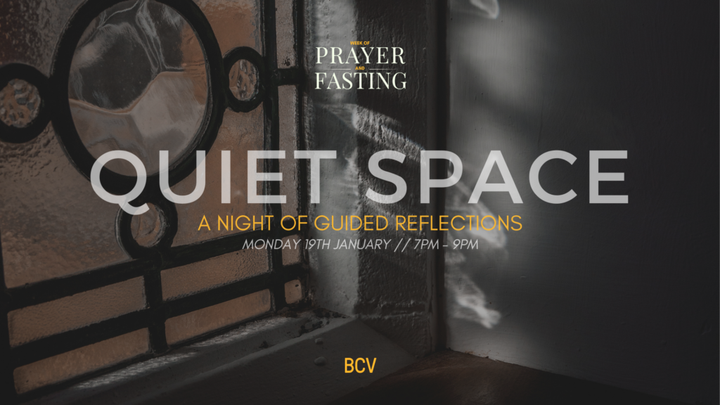 We want to start our week of prayer and fasting by creating sacred space to spend time with Jesus and hear his voice. Join us for quiet guided reflections between 7pm-9pm.